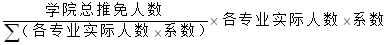 (十)公司下拨公司的推免名额减去各专业班级应推免人数向下取整得到的整数合计数后剩余的名额,按照各专业班级应推免人数小数点后一位从高到低再依次分配1名,分配完为止,即得各专业班级实际推免人数。各专业班级具体的推免名额见表1。