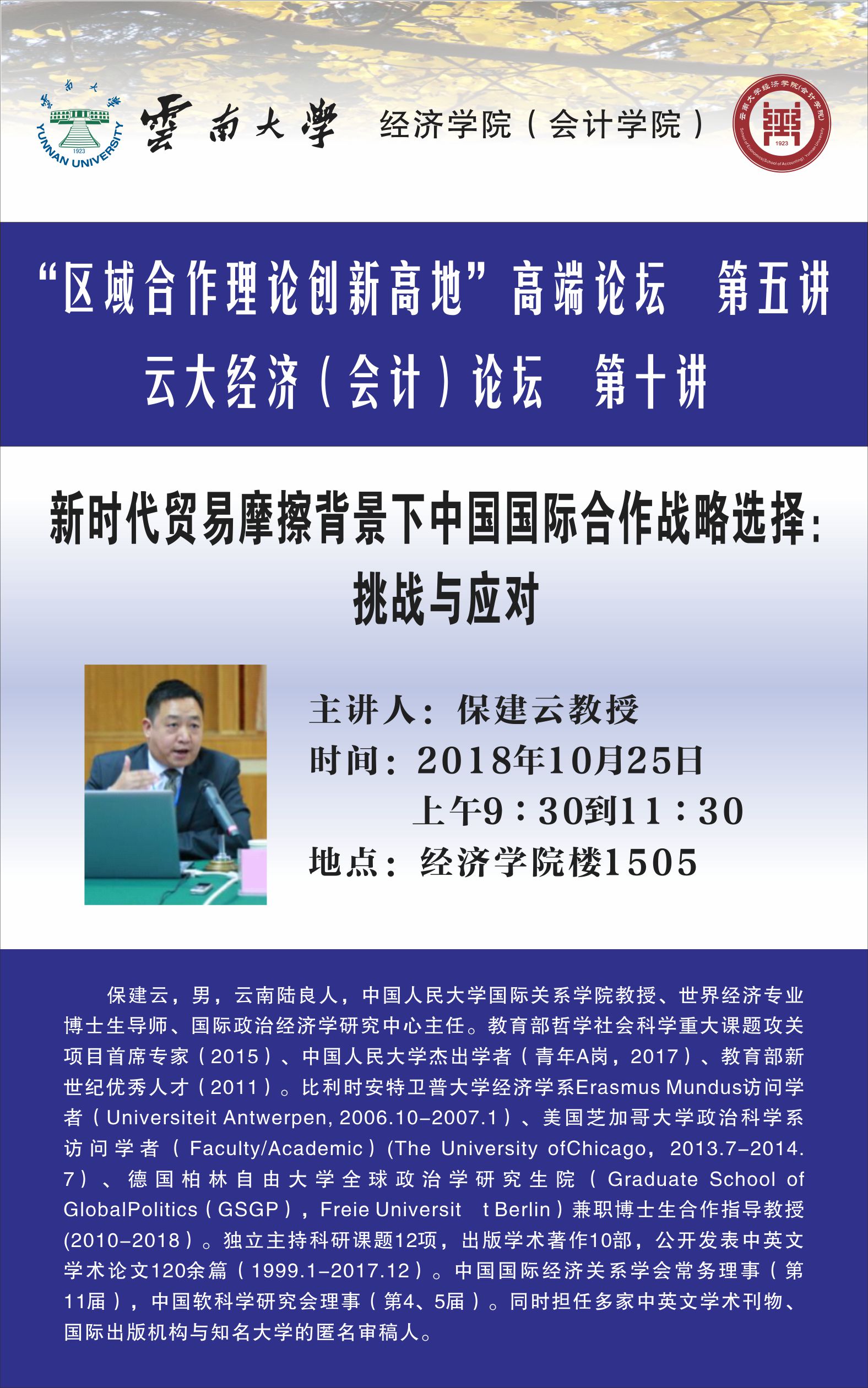 【论坛通知】高端论坛第五讲 主讲人:中国人民大学保建云教授