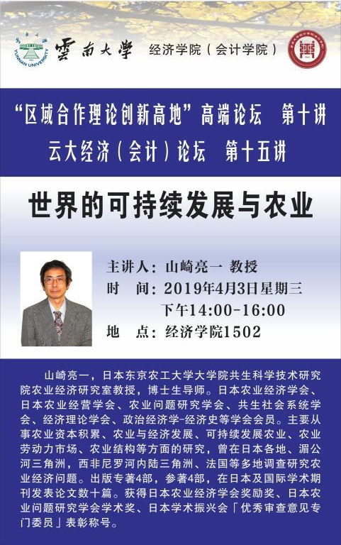 上一条:区域合作理论创新高地高端论坛第十讲:山崎亮一教授——世界的可持续发展与农业